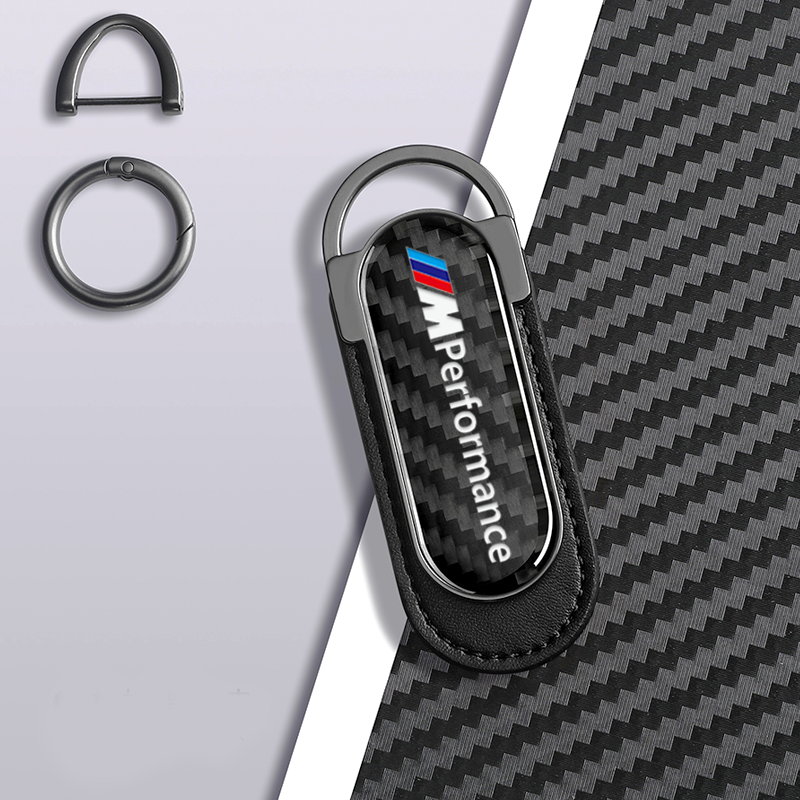 Carbon Fiber Metal Black Leather Keychain For BMW M Performance Models