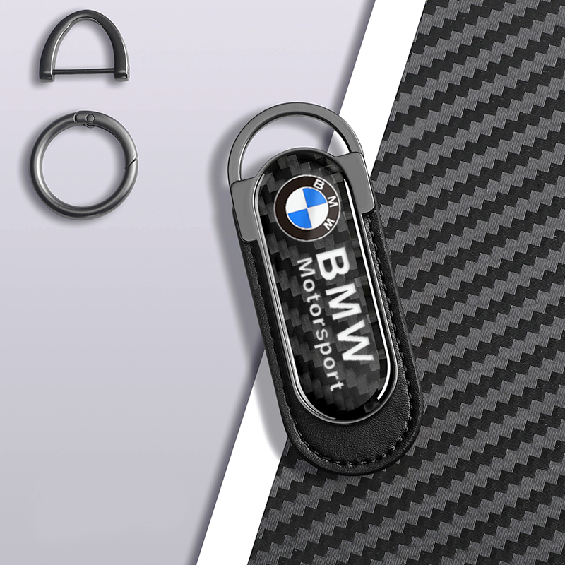Carbon Fiber Metal Black Leather Keychain For BMW Models
