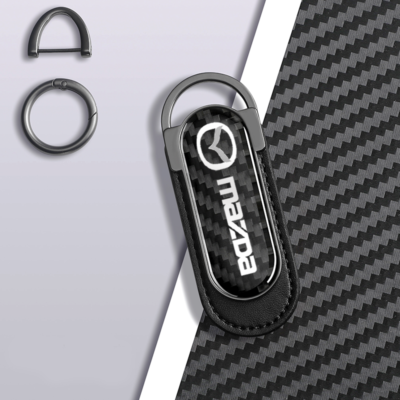 Carbon Fiber Metal Black Leather Keychain For Mazda Models