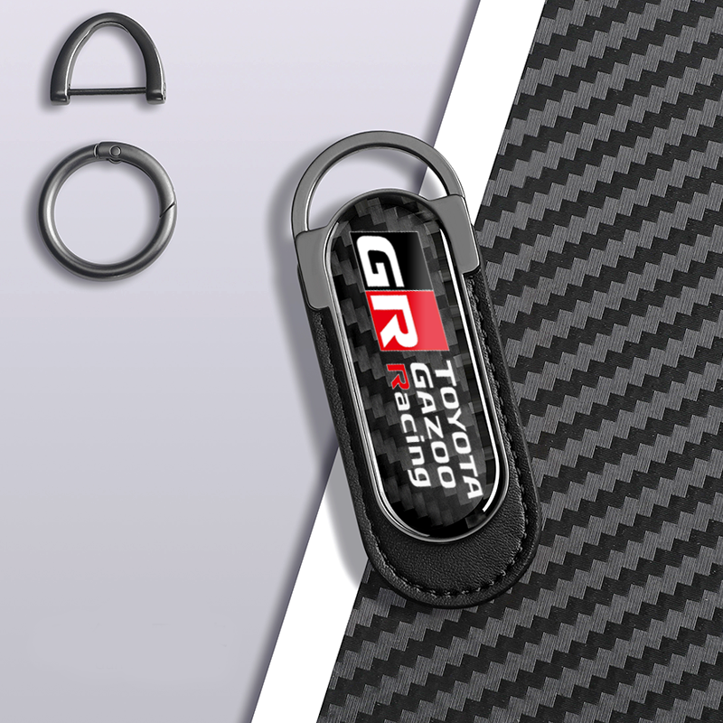 Carbon Fiber Metal Black Leather Keychain For Toyota GR Models